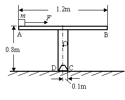 (12分)水平导轨AB固定在支架CD上,其形状、尺寸如图所示。导轨与支架的总质量M=4kg,其重心在O点,它只能绕支架C点且垂直于纸面的水平轴转动。质量m=1kg的小铁块静止于水平导轨AB的A端,现受到水平拉力F=2.5N的作用。已知小铁块和导轨之间的动摩擦因数μ=0.2。g取10m/s2,求: