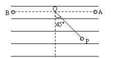 (12分)如图所示,一质量为m带正电的小球,用长为L的绝缘细线悬挂于O点,处于一水平方向的匀强电场中,静止时细线右偏与竖直方向成45°角,位于图中的P点。重力加速度为g,求: