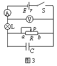 3.在图3所示的电路中,电源电动势为E,电源内阻为r,闭合开关S,待电流达到稳定后,将滑动变阻器的滑动触头P从图示位置向a端移动一些,待电流再次达到稳定后,则与P移动前相比
