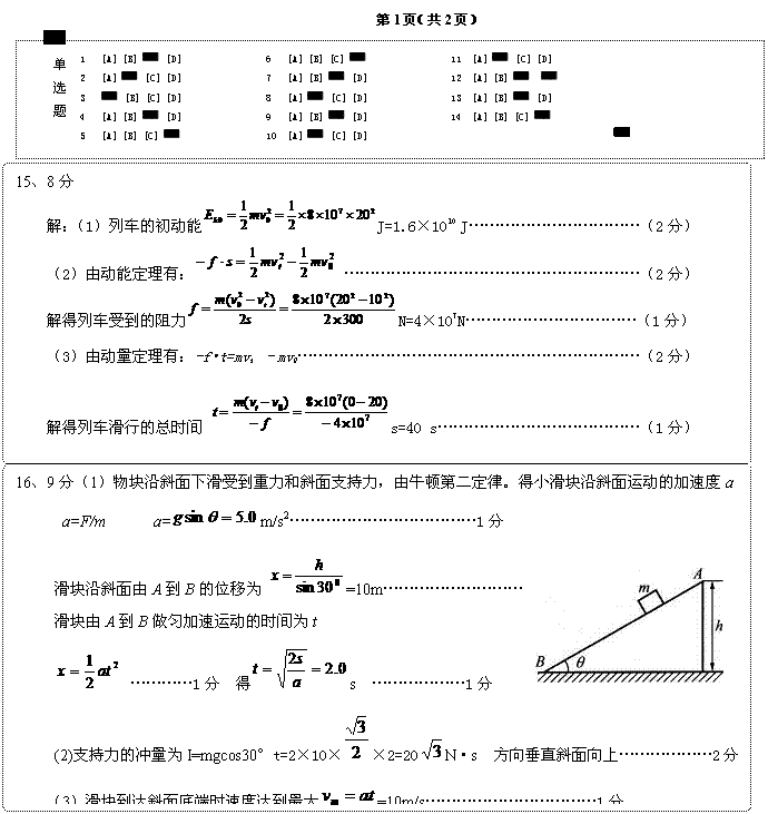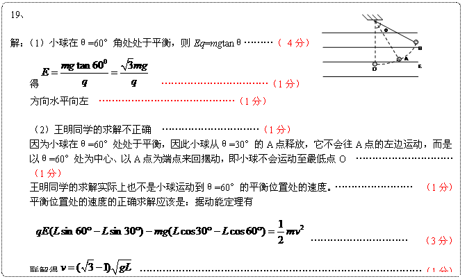 1.在一根张紧的水平绳上悬挂五个摆,其中A、E的摆长为l,B的摆长为0.5l,C的摆长为1.5l,D的摆长为2l。先使A振动起来,其他各摆随后也振动起来,则在B、C、D、E四个摆中,振幅最大的是