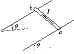 如图所示,两根光滑金属导轨平行放置,导轨所在平面与水平面间的夹角为θ。整个装置处于沿竖直方向的匀强磁场中。金属杆ab垂直导轨放置,当杆中通有从a到b的恒定电流I时,金属杆ab刚好静止。则