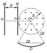 放置,s1、s2分别为M、N板上的小孔,s1、s2、O三点共线,它们的连线垂直M、N,且s2O=R。以O为圆心、R为半径的圆形区域内存在磁感应强度为B、方向垂直纸面向外的匀强磁场。D为收集板,板上各点到O点的距离以及板两端点的距离都为2R,板两端点的连线垂直M、N板。质量为m、带电量为+q的粒子,经s1进入M、N间的电场后,通过s2进入磁场。粒子在s1处的速度和粒子所受的重力均不计。