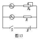 (1)该同学根据现有的实验器材,设计了如图15所示的电路,请你按照电路图在图16中完成实物连线。
