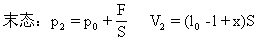 以气体为对象,p1=p0 V1=ls T1=T0