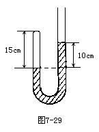 例15 如图7-29所示,左端封闭,右端开口的均匀U型管中用水银封有一段长150mm的空气柱。左臂总长为250mm,右臂足够长。如果将管的开口变为竖直向下,求空气柱的长度。(设大气压为750mmHg)
