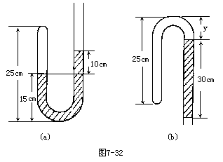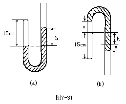 设初始左、右两臂水银面高度差为h,倒转后空气柱仍在左臂(如图7-31)则:由玻意耳定律有: