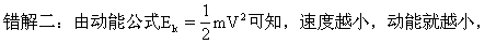 错解三:由加速运动的规律我们了解到,物体的速度大小由初速和加速度与时间决定,随着时间的推移,速度肯定越来越快再由动能公式