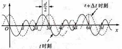 5.如图所示,实线和虚线分别为某种波在t时刻和t+Δt时刻的波形曲线。B和C是横坐标分别为d和3d的两个质点,下列说法中正确的是 ( )