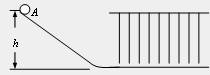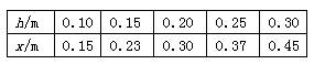 1.(8分)如图所示是一个实验装置,光滑斜面上高为h的A处有一小球自静止开始下滑,抵达水平面时,立即遇到一系列条形布帘的阻挡,经过一定的位移x后停下。先保持高度不变,用大小相同、质量不同的球做实验得到数据如表所示。再用质量一定的小球,从不同高度处释放小球,得到数据如表所示。