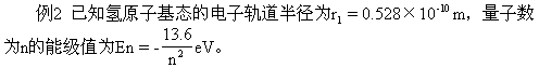 道上的能量,它包括电势能EP1和动能EK1。计算表明EP1=-2EK1,所以E1=EP1+EK1=-EK1,EK1=-E1=l3.6eV。虽然错解中数值表明正确,但理解是错误的。