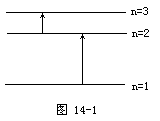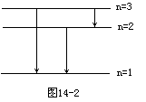 (2)当氢原子从量子数n=3的能级跃迁到较低能级时,可以得到3条光谱线。如图14-2所示。
