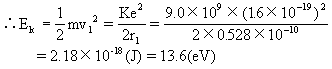 (1)电子在基态轨道中运动时量子数n=1,其动能为