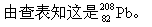 最后生成元素的原子量是208,原子序数是82,由查表知这是铅208,