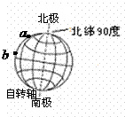 由于地球自转,地球表面处的物体都随地球一起作匀速圆周运动,将地球视为圆球体,如图所示,比较a、b处物体的运动,下列说法正确的是 ------------------( )