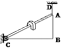 如图所示,质量分布均匀的直角三角板ABC重为20N,可绕过C点、垂直于板面的水平转动轴自由转动,A点用竖直线AD拉住,当BC处于水平平衡位置时AD线上的拉力大小为F。后将一块凹槽口朝下、重为4N的物块卡在斜边AC上,物块沿斜边AC匀加速下滑,当物块经过AC的中点时细线的拉力大小变为F+DF,则下述结论中正确的是 ------------------------------------- ( )