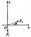 作用于原点O的三力平衡,已知三力均位于xOy平面内,其中一个力的大小为F1,沿y轴负方向;力F2的大小未知,与x轴正方向的夹角为θ,如图所示。下列关于第三个力F3的判断,正确的是-------------------------------------------------------------( )