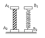4、物块A1、A2、B1和B2的质量均为m,A1、A2用刚性轻杆连接,B1、B2用轻质弹簧连结。两个装置都放在水平的支托物上,处于平衡状态,如图所示。今突然迅速地撤去支托物,让物块下落。在除去支托物的瞬间,A1、A2受到的合力分别为f1和f2,B1、B2受到的合力分别为F1和F2。则( )