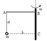 10.质量为m的小球由轻绳a和b系于一轻质木架上的A点和C点,如图所示。当轻杆绕轴BC以角速度ω匀速转动时,小球在水平面内作匀速圆周运动,绳a在竖直方向、绳b在水平方向。当小球运动到图示位置时.绳b被烧断,同时杆也停止转动,则( )