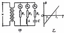 的阻值相同,线圈L的电阻不计。在某段时间内理想变压器原线圈内磁场的变化如图乙所示,则在