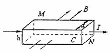 12、如图所示,有一金属块放在垂直于表面C的匀强磁场中,磁感应强度B,金属块的厚度为d,高为h,当有稳恒电流I平行平面C的方向通过时,由于磁场力的作用,金属块中单位和体积内参与导电的自由电子数目为(上下两面M、N上的电压分别为UM、NN)
