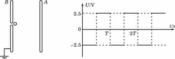 19、如图1所示,真空中相距d=5 cm的两块平行金属板A、B与电源连接(图中未画出),其中B板接地(电势为零),A板电势变化的规律如图2所示.