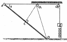 (13分)如图所示,质量mB=3.5kg的物体B通过一轻弹簧固连在地面上,弹簧的劲度系数k=100N/m.一轻绳一端与物体B连接,绕过无摩擦的两个轻质小定滑轮O1、O2后,另一端与套在光滑直杆顶端的、质量mA=1.6kg的小球A连接。已知直杆固定,杆长L为0.8m,且与水平面的夹角θ=37°。初始时使小球A静止不动,与A端相连的绳子保持水平,此时绳子中的张力F为45N。已知AO1=0.5m,重力加速度g取10m/s2,绳子不可伸长.现将小球A从静止释放,则: