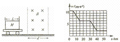 /s的速度进入与线圈平面垂直、磁感应强度为B的水平有界匀强磁场,磁场方向垂直纸面向里,已知小车运动的速度ν随车的位移s变化的ν-s图像如图所示.则磁场的宽度d= cm , w线圈通过磁场过程中产生的热量Q=