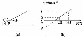如图1(a)所示,用一水平外力F拉着一个静止在倾角为θ的光滑斜面上的物体,逐渐增大F,物体做变加速运动,其加速度a随外力F变化的图象如图1(b)所示,若重力加速度g取10 m/s2.根据图(b)中所提供的信息可以计算出 ( )