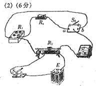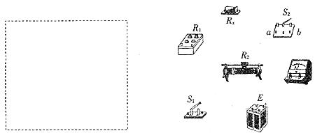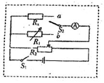 电流表A,量程为100mA,其内阻约为20Ω;电源E,电动势约为6v,其内阻可忽略;电阻箱R1,最大阻值999.9Ω;滑动变阻器器R2,最大阻值约为20Ω;单刀单掷开关S1一个;单刀双掷开关S2一个;导线若干。