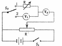 b.将单刀双掷开关S2置于触点S1,调节滑动变阻器R′,使电压表V2的指针指在刻度盘第N格,然后将单刀双掷开关S2置于触点1,调节电阻箱R使电压表V2的指针指在 ,记下此时电阻箱R的阻值RA。