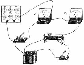 b.保持滑动变阻器R′的滑动触头位置不变,调节电阻箱R,使电压表V2的指针指在 ,记下电阻箱R的阻值RB。