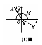 (1)如图(1)所示,用底面是半圆形的玻璃砖做测定玻璃折射率的实验。在白纸上画有直角坐标系xoy,玻璃砖M放在白纸上,其底面的圆心在O点,直边与x轴重合。OA是画在纸上的直线,P1、P2为竖直地插在直线OA上的两枚大头针,P3是竖直地插在纸上的第三枚大头针,调整视线使P3挡住P1、P2的像,α是直线OA与y轴正方向的夹角,β是直线OP3与y轴负方向的夹角。测出角α和β,便可求得玻璃的折射率。已知该玻璃砖的折射率在1.5~1.8之间,以下操作正确的是( )