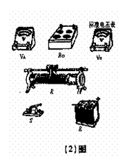 ①图(2)是以上器材和电压表VA、VB的实物示意图。试在图中画出连线,把它们连成进行核对的实验电路,并要求滑片向右移动时电压表示数变大。