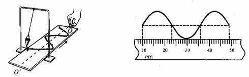 (2)如图所示是演示沙摆振动图象的实验装置结果,沙摆的摆动可看作简谐运动。若水平拉板的速率为0.2m/s,则沙摆振动一个周期,板通过的距离为