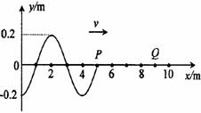 35、一列简谐横波沿x轴正方向传播,传播速度为10m/s。当波传到x=5m处的质点P时,波形如图所示。则以下判断正确的是 ( )