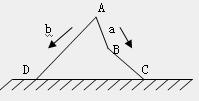 11.如图所示为两个光滑的斜面,高相同,右边由两部分组成,且AB+BC=AD。两小球a,b分别从A点沿两侧斜面由静止滑下,不计转折处的能量损失,哪一边的小球先滑到斜面底部?(A)