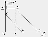 作v-t图求解。从图中可得两车所要保持的距离就是平行四边形abcd的面积,其面积恰等于矩形Oace的面积,即: Sabcd=25×1=25m,所以安全距离为50m。