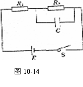 (16分)图10-14 所示的电路中,电源电动势E=6.O V,其内阻可忽略不计.电阻的阻值分别为R1=2.4 k Ω、R2=4.8 kΩ,电容器的电容C=4.7 μF.闭合开关S,待电流稳定后,用电压表测R1两端的电压,其稳定值为1.50 V