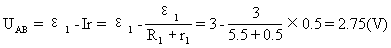 ε1、r1和R1形成闭合回路,A,B两点间的电压为: