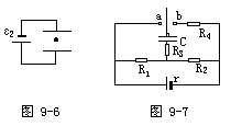 例4 如图9-7所示,电源电动势ε=9V,内电阻r=0.5Ω,电阻R1=5.0Ω、R2=3.5Ω、R3=6.0Ω、R4=3.0Ω,电容C=2.0μF。当电键K由a与接触到与b接触通过R3的电量是多少?
