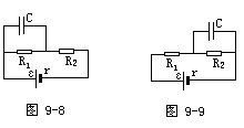 没有对电容器的充电放电过程做深入分析。图9-8图中电容器的上极板的电势高,图9-9中电容器的下极板的电势高。电容器经历了先放电后充电的过程。经过R3的电量应是两次充电电量之和。