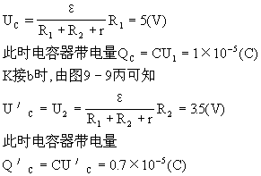 当K断开电路再次达到稳定后,回路中无电流电路结构为图9-6所示。电容器两端电压U′=ε2=1.25V