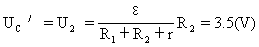 当电键K断开后,电容器上只有电源 给它充电,U′=ε2。