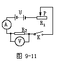 错解七:如图9-25,无论电键是否闭合,电源、变阻器回路始终是接通的,电键的位置连接错了。
