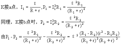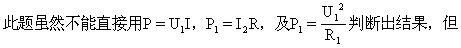 (l)根据P=I2R可知,当R1>R2时,P1>P2;当R1=R2时,P1=P2;当Rl<R2时,P1>P2。