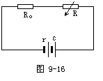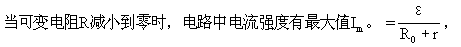 电流经过电阻R0,电流能转换成内能,R0上功率决定于电流强度大小和电阻值,即P=I2R0,所以当电流强度最大时,R0上得到最大功率。由纯电阻的闭合电路欧姆定律,有