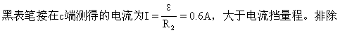 用电压挡测量时,由于电路断开(无论是从ab间断开,还是从R1与R2之间断开)电路中无电流,黑表笔与电源负极等电势。直流电压挡测量的数值是电源电动势ε=6V。所以A选项可行,C选项不行。