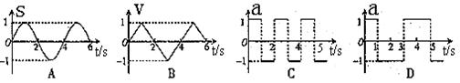 11、设物体运动的加速度为a、速度为v、位移为s。现有四个不同物体的运动图象如图所示,假设物体在t=0时的速度均为零,则其中表示物体做单向直线运动的图象是[ ]