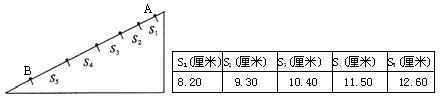 23、有一个小球沿斜面下滑, 用每隔 0.1 秒拍一次的频闪相机拍摄不同时刻小球的位置(如图所示 ,即照片上相邻两个小球位置的时间间隔为 0.1 秒 ),测得比小球连续相等时间内的位移如表: