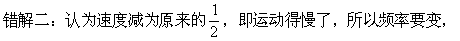 错解二中关于频率不变的判断是正确的,错误出现在后半句的结论上。判断只从能量不变去看,当E总不变时,EP=mgh,m变大了,h一定变小。说明有些同学考虑问题还是不够全面。